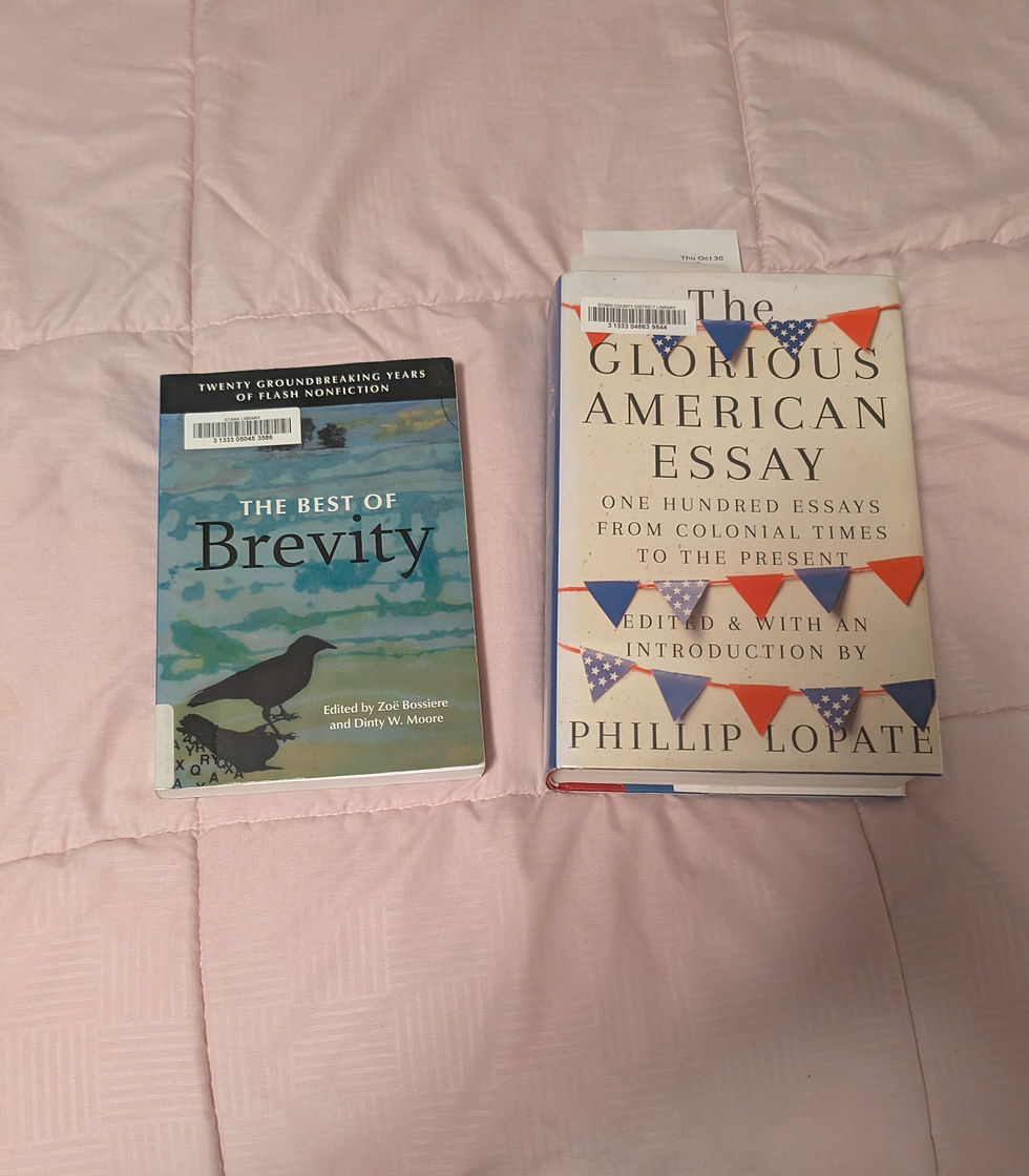 I also did some research on Phillip Lopate, and he is a retired professor who used to teach CNF at Columbia. He has written books on the craftsmanship of essays, and also has his own personal essays published about New York City and teaching. I’m hoping to buy his other anthology called, The Contemporary American Essay in addition to getting my own copy of The Glorious American Essay. The Contemporary American Essay isn’t at the library to borrow, and the Ohio Library Consort program isn’t fully running at the moment.